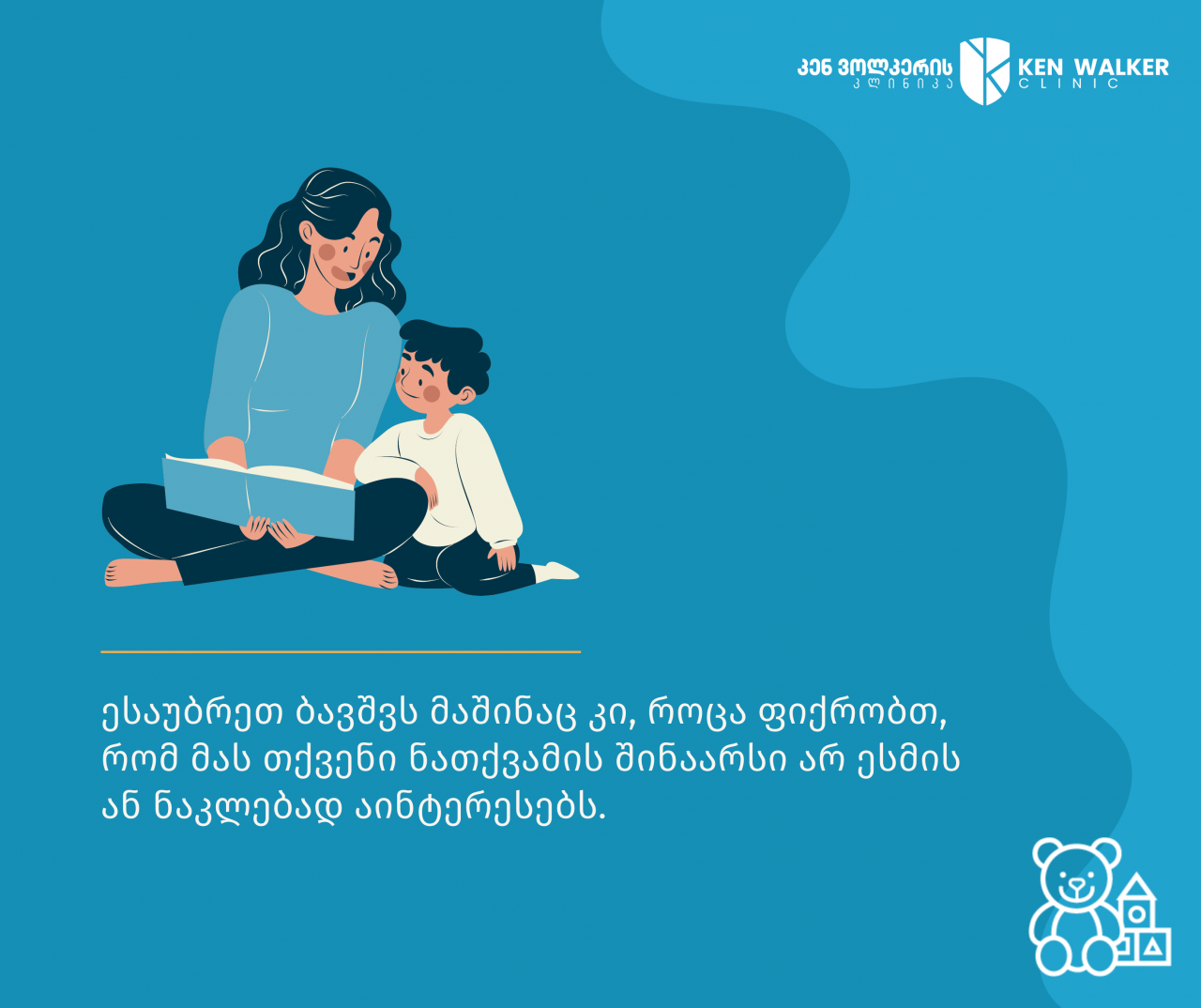 ესაუბრეთ ბავშვს მაშინაც კი, როცა ფიქრობთ, რომ მას თქვენი ნათქვამის შინაარსი არ ესმის ან ნაკლებად აინტერესებს.